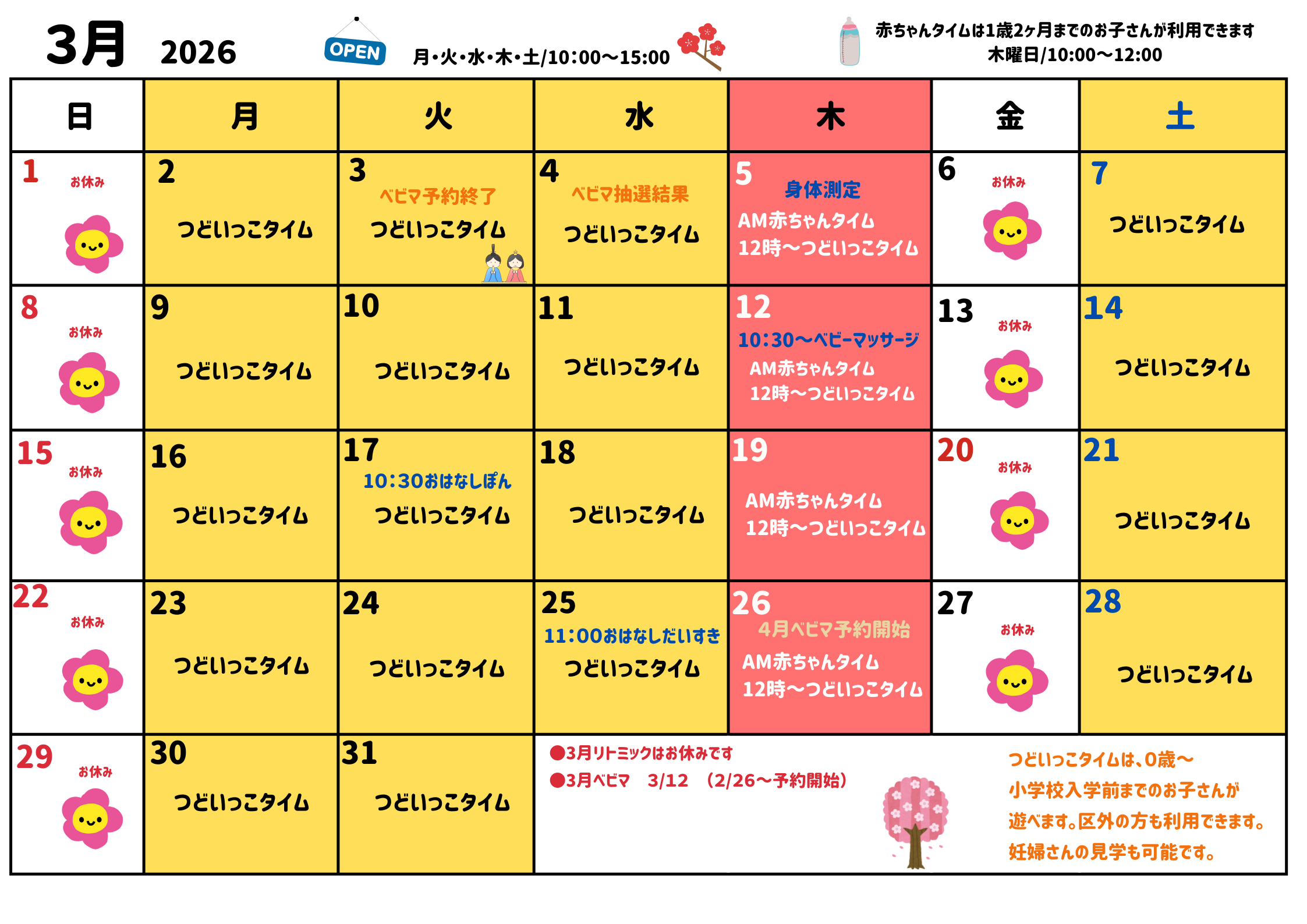 ・赤ちゃん専用タイム:木曜10時~12時〈0~1歳2ヶ月までのお子さんが利用できます〉